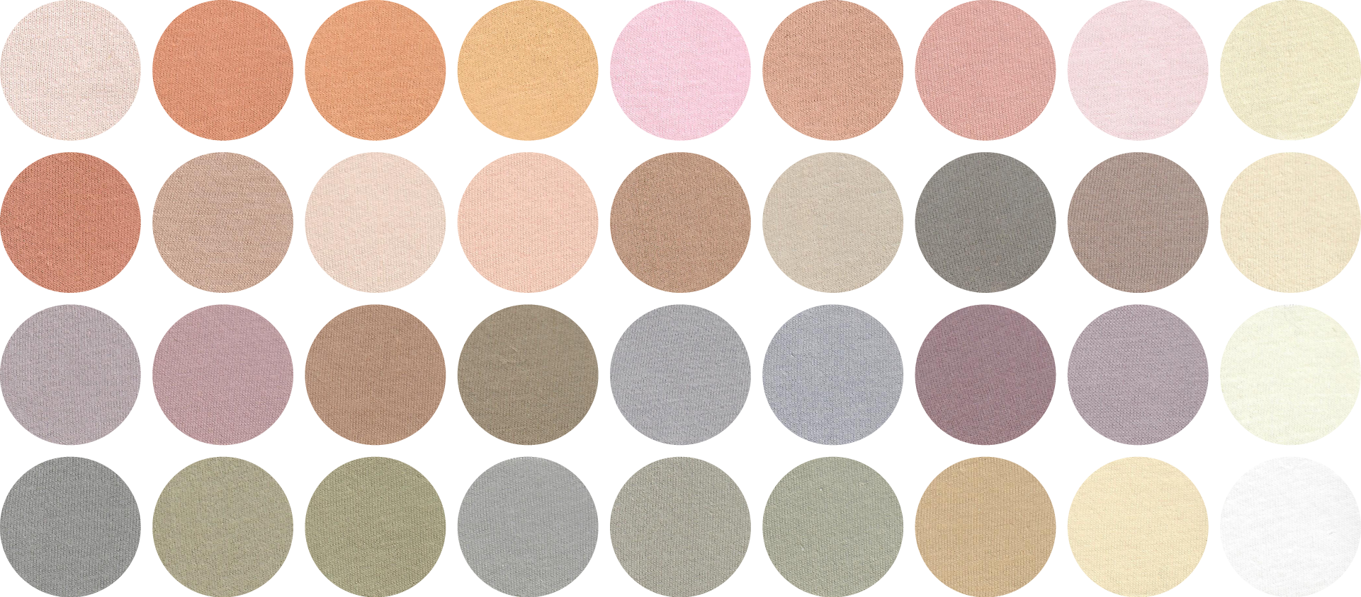 Ficus Innovations natural dye system has 40+ colors in its color palette. Using only plant waste and extracts from pomegranate peel, olive leaf, lavender, and walnut shell, among others, and bio-resins, plant-based oils, and clay to achieve high color fastness. No metal mordants, aluminum salts, formaldehyde, and azo dyes are used.